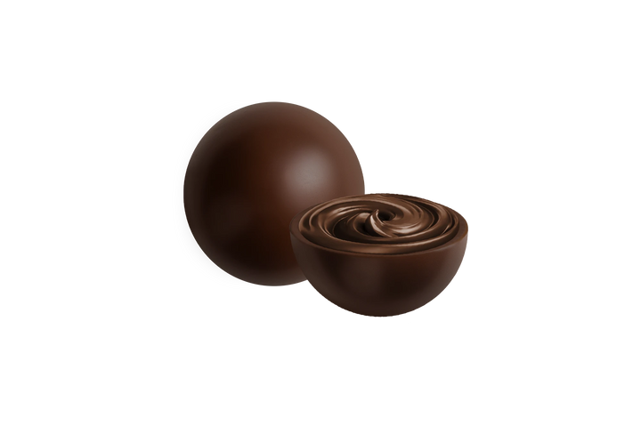 Scoprite Maxtris Boule Fondente: gustose sfere con guscio al cioccolato fondente, cacao minimo 50%, e un morbido ripieno al cioccolato.