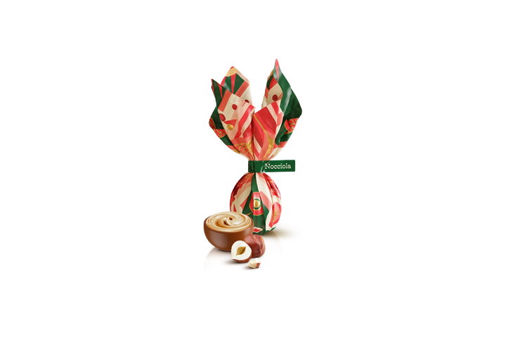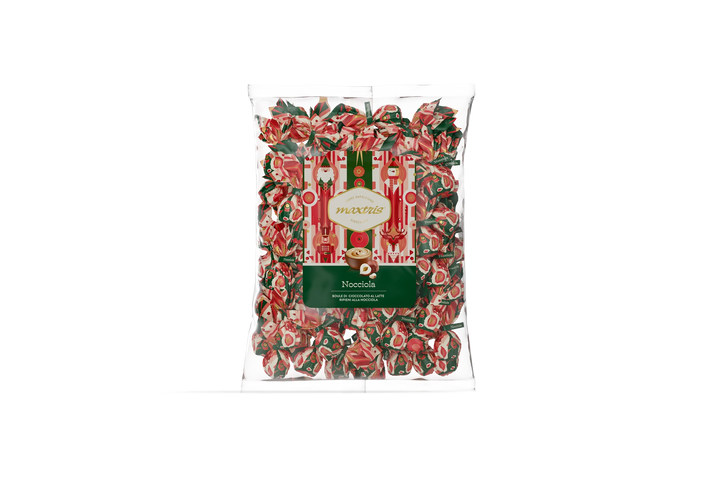 Confezionato con un elegante incarto a tema Natalizio, la Christmas Boule Nocciola è una sfera di cioccolato al latte con un morbido ripieno di cioccolato e pasta di nocciola.