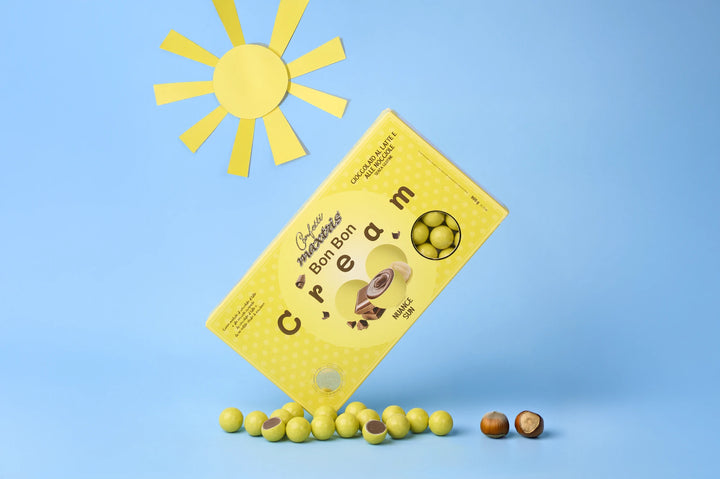 Il suo cuore cremoso di cioccolato al latte e nocciole, avvolto da cioccolato al latte e protetto da un sottile strato di zucchero, regala un mix perfetto tra crunchy e gusto.