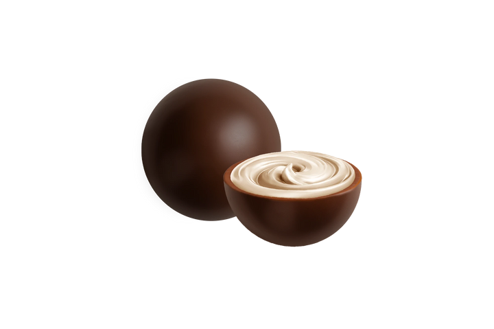 Maxtris Boule Bianco Latte: deliziose sfere di cioccolato al latte con cuore cremoso di cioccolato bianco.