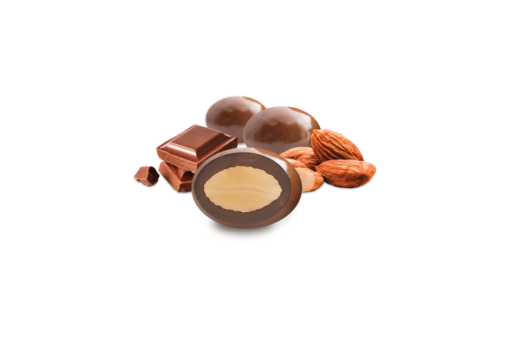 Cioccolato al latte (79%) (zucchero, latte intero in polvere, burro di cacao, pasta di cacao. Emulsionante: lecitina di soia. Aroma naturale di vaniglia), mandorle tostate (20%). Agenti di rivestimento: E414, E904.